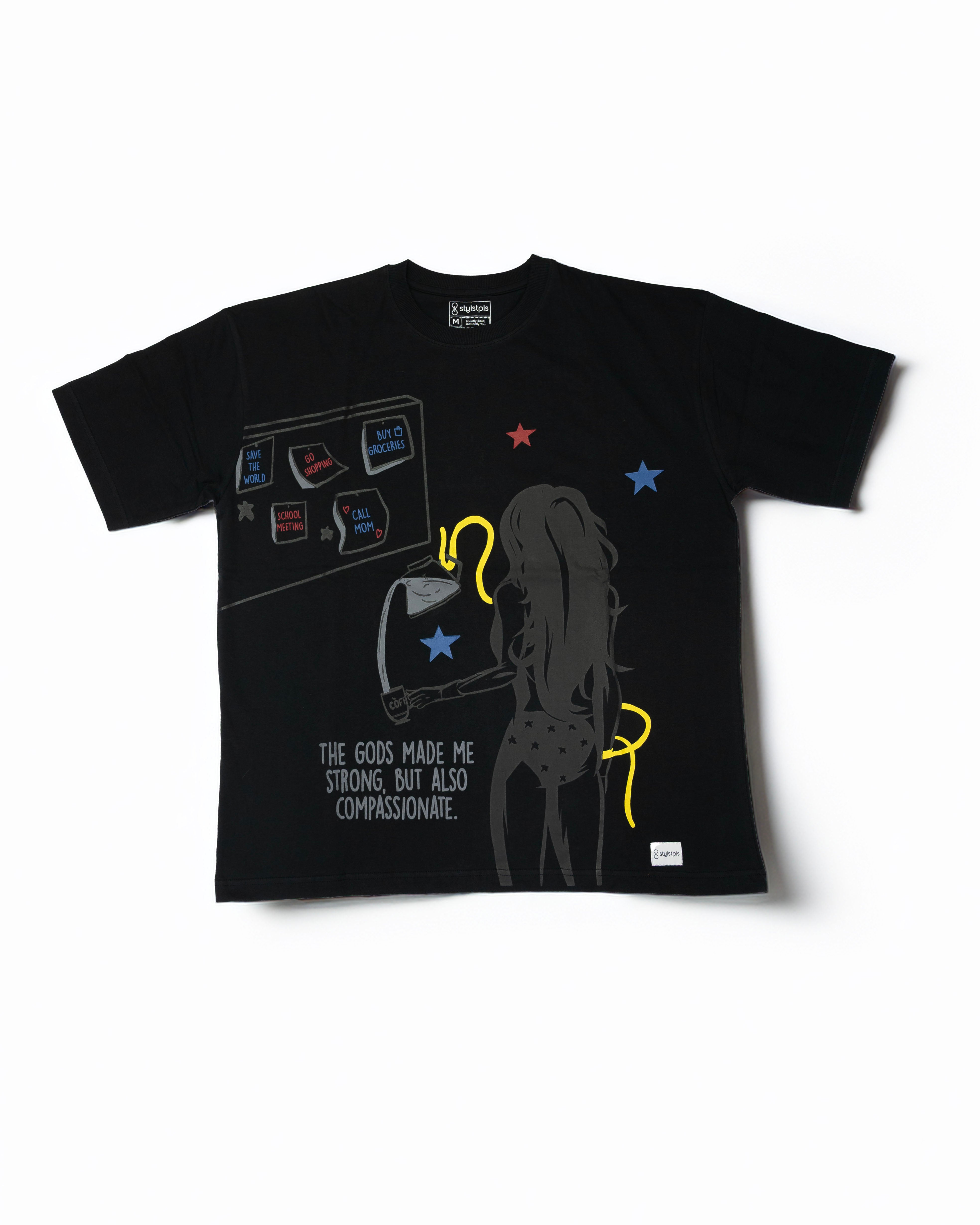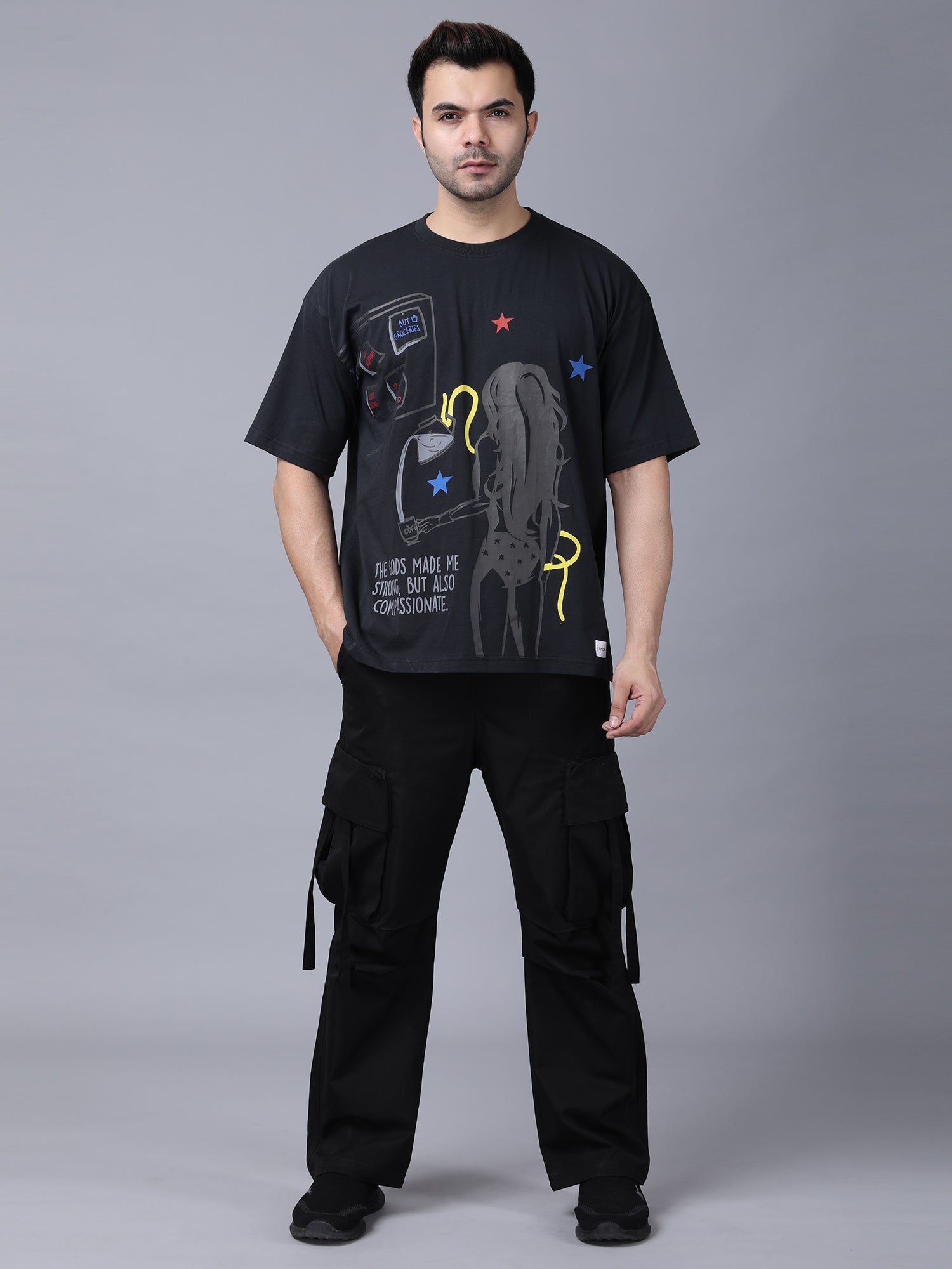 Gender Neutral clothing, Smooth texture Organic cotton, 190 gsm, Minimalistic puff print + screen print on front and back. Model is wearing size L